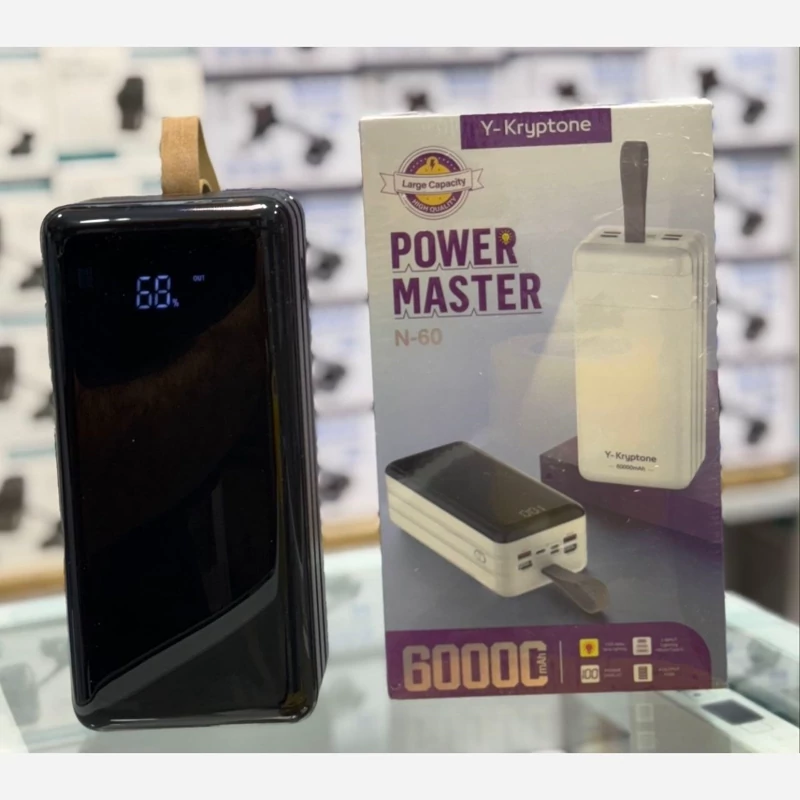 پاوربانک پاوربانک Y-kryptone N60 orginal 60000mAh دارای نمایشگر دارای چراغ قوه