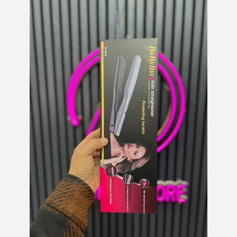 اتو مو حرفه ای و سالنی بابلیس جنس صفحه سرامیک تورمالین 1080 درجه فارنهایت گرمایش صفحه نمایش دیجیتالی قابلیت تنظیم دم