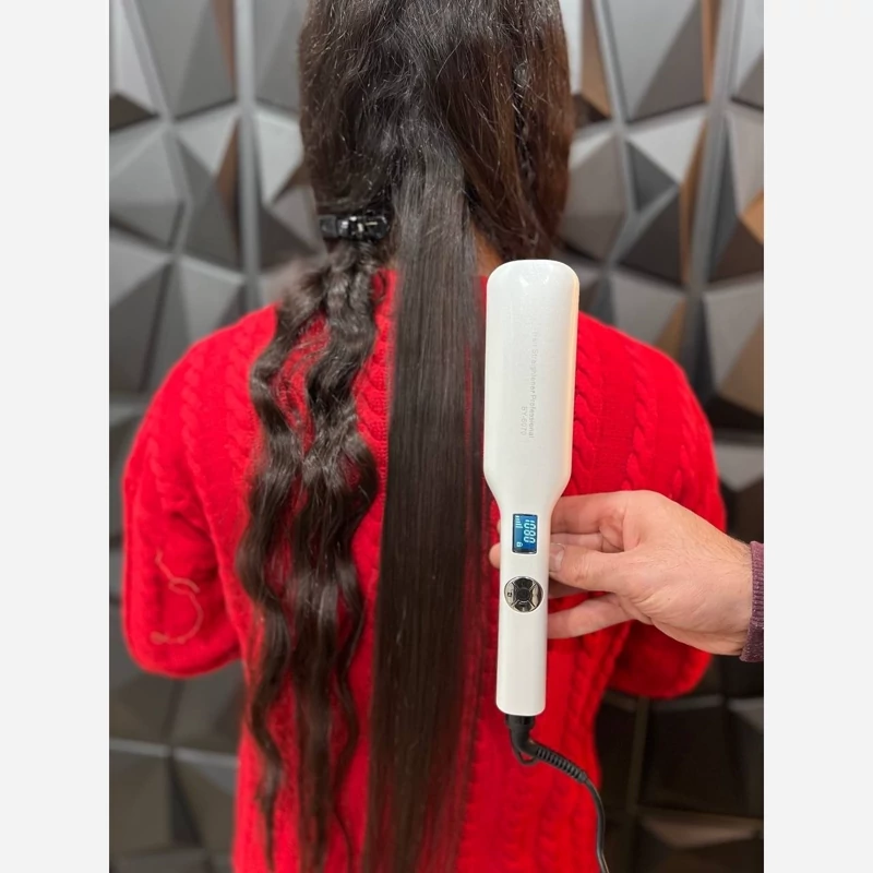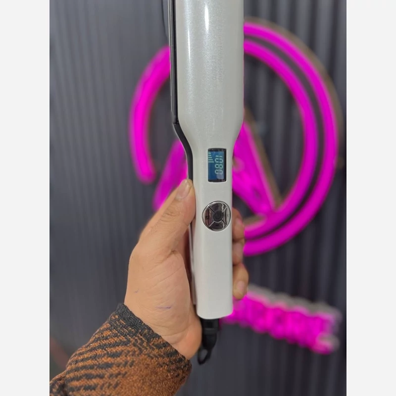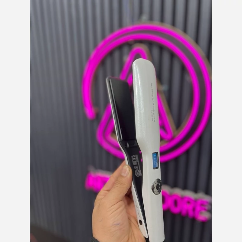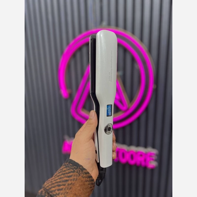 اتو مو حرفه ای و سالنی بابلیس جنس صفحه سرامیک تورمالین 1080 درجه فارنهایت گرمایش صفحه نمایش دیجیتالی قابلیت تنظیم دم