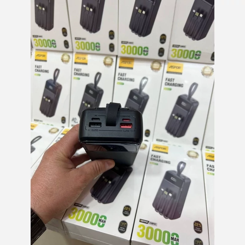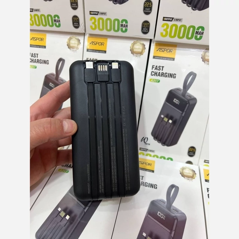 پاور بانک 30000 ASPOR مدلA317 با گارانتی 6 ماە اورجینال فست شارژ صفحە دیجیتالی