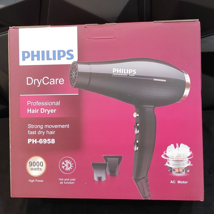 سشوار فیلیپس مدل 6958 متور سنگین 9000 دوسرعته دارای دکمه خنک کننده باد سرد وگرم