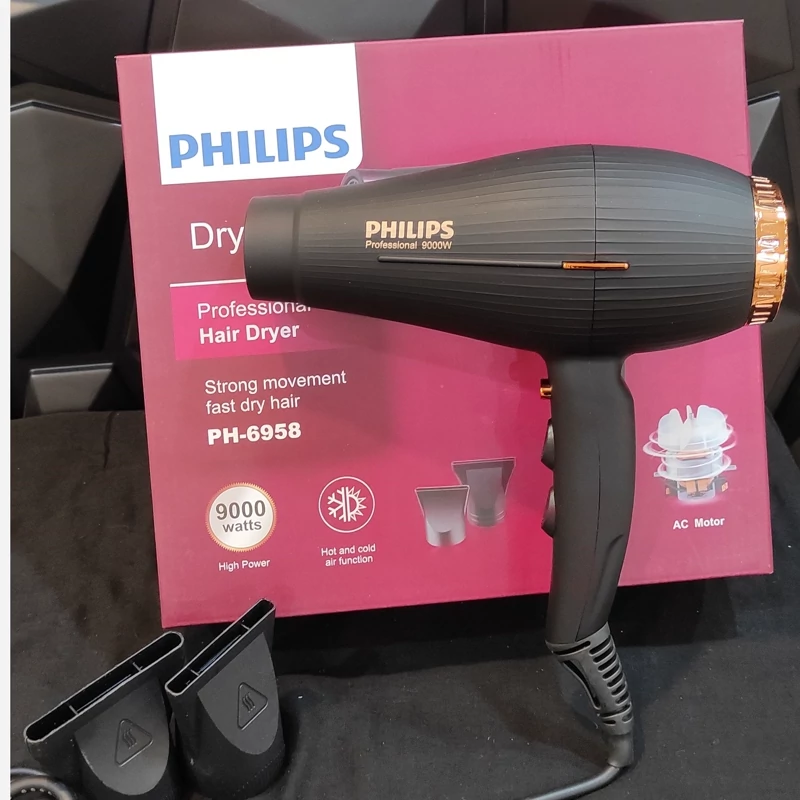 سشوار فیلیپس مدل 6958 متور سنگین 9000 دوسرعته دارای دکمه خنک کننده باد سرد وگرم