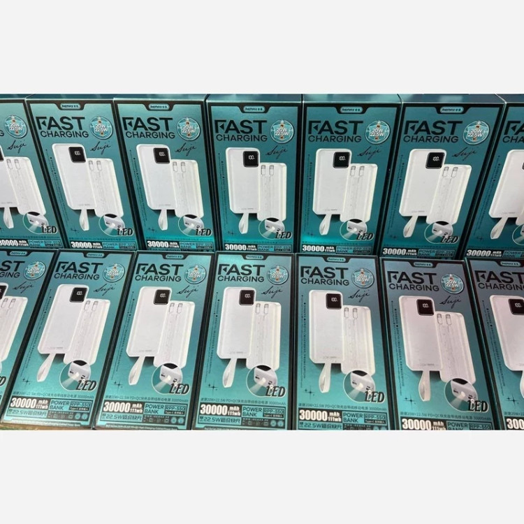 پاوربانک 30000 REMAX مدلRP550 اورجینال خروجی2 پرت فست خروجی pd 22.5 وات ورودی2پرت میکروtypcصفحە دیجیتالی دارای چراغDLE
