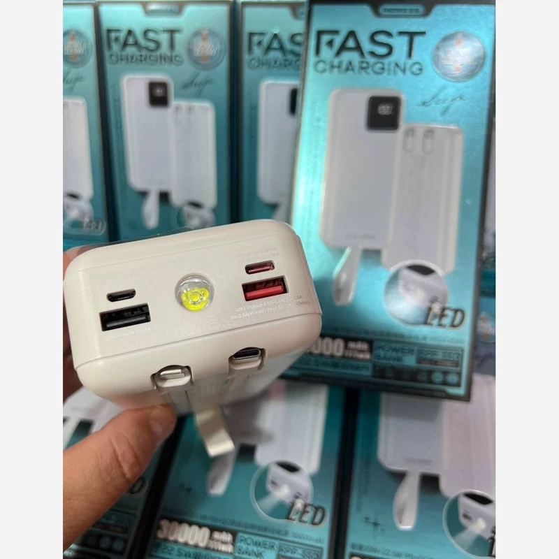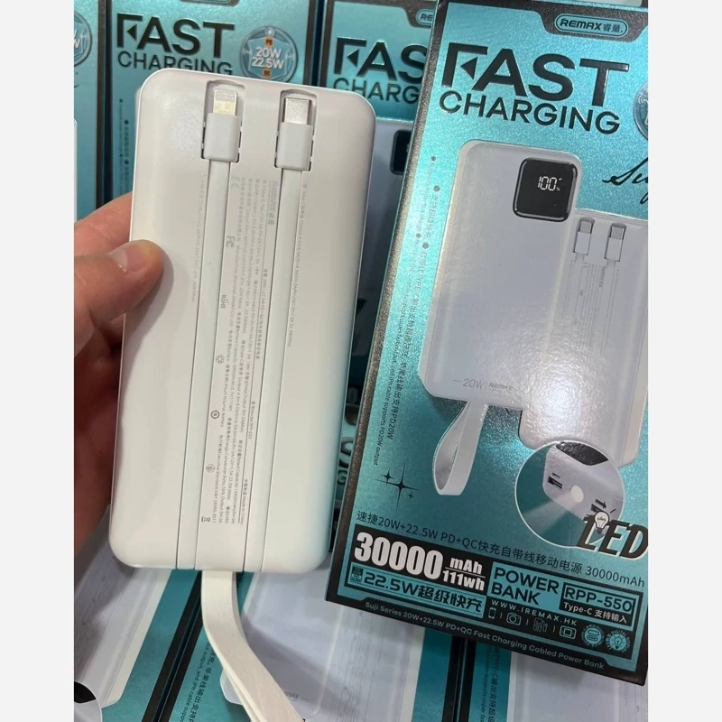 پاوربانک 30000 REMAX مدلRP550 اورجینال خروجی2 پرت فست خروجی pd 22.5 وات ورودی2پرت میکروtypcصفحە دیجیتالی دارای چراغDLE