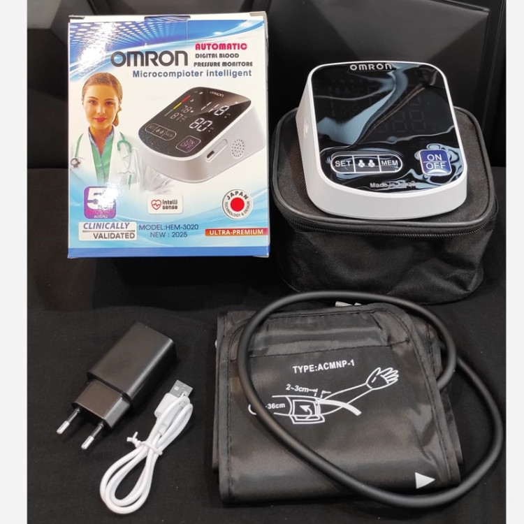 فشارسنج امرون ساخت ژاپن دارای کیف برزنتی ضد آب قابل حمل فشارسنج هم با برق مستقیم کار میکنه هم باتری خور است
